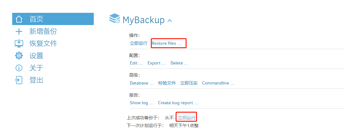 设置完成后,可立即运行备份