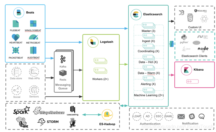 下面是 Elastic Stack 用于日志场景的典型架构图