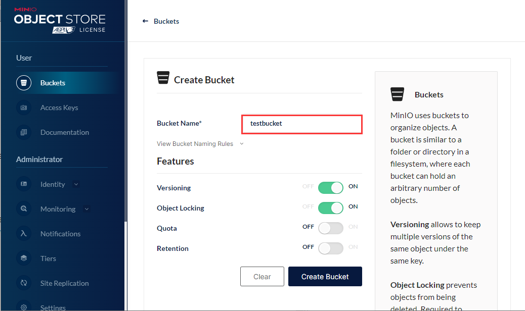 登录后台,点击 Create Bucket,创建新的存储桶