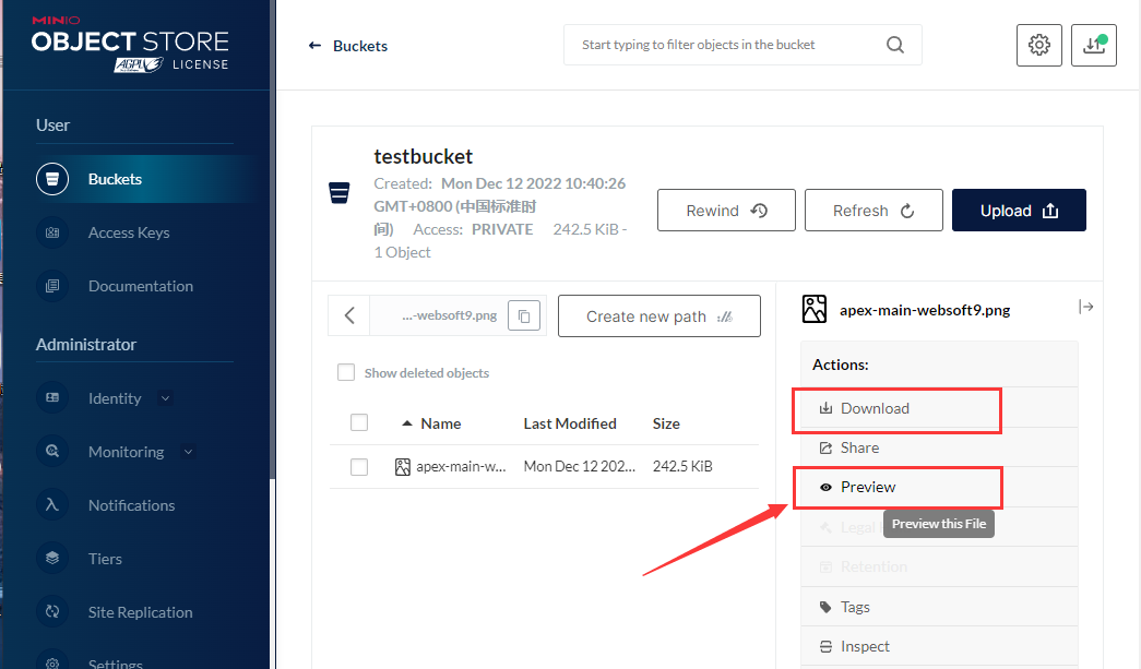 上传文件后可以下载和预览